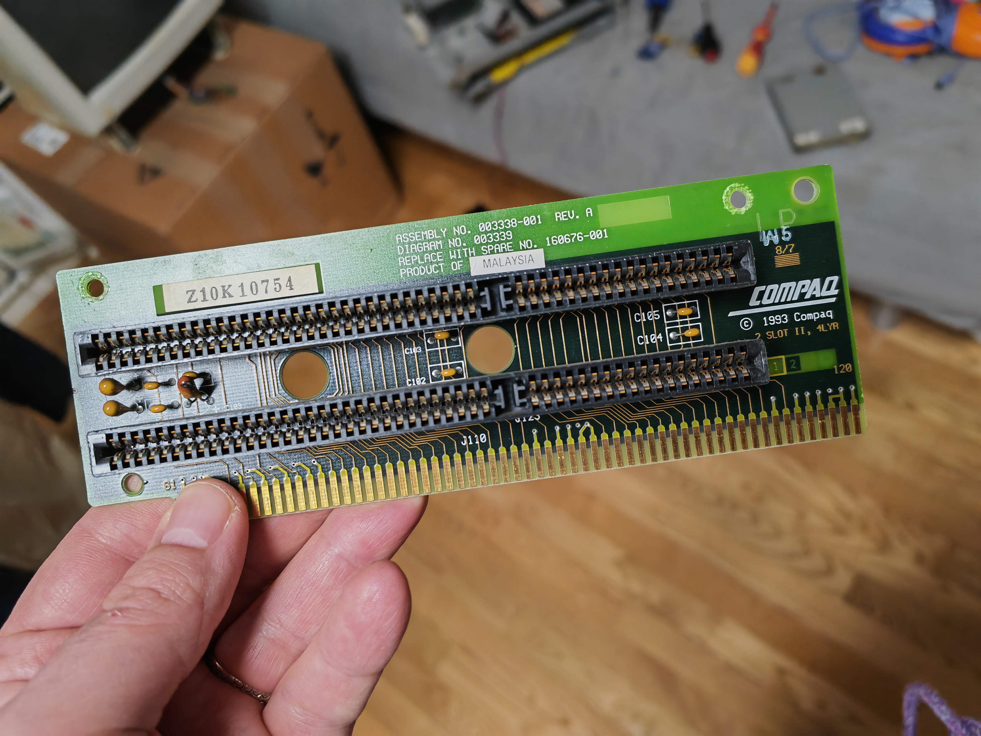 Der PC ließ sich zuvor nicht einschalten, da hatte sich eine Tantal-Perle auf der internen Riser-Karte mit Rauch und Knall verabschiedet und somit einen Start des Rechners/Netzteils verhindert...