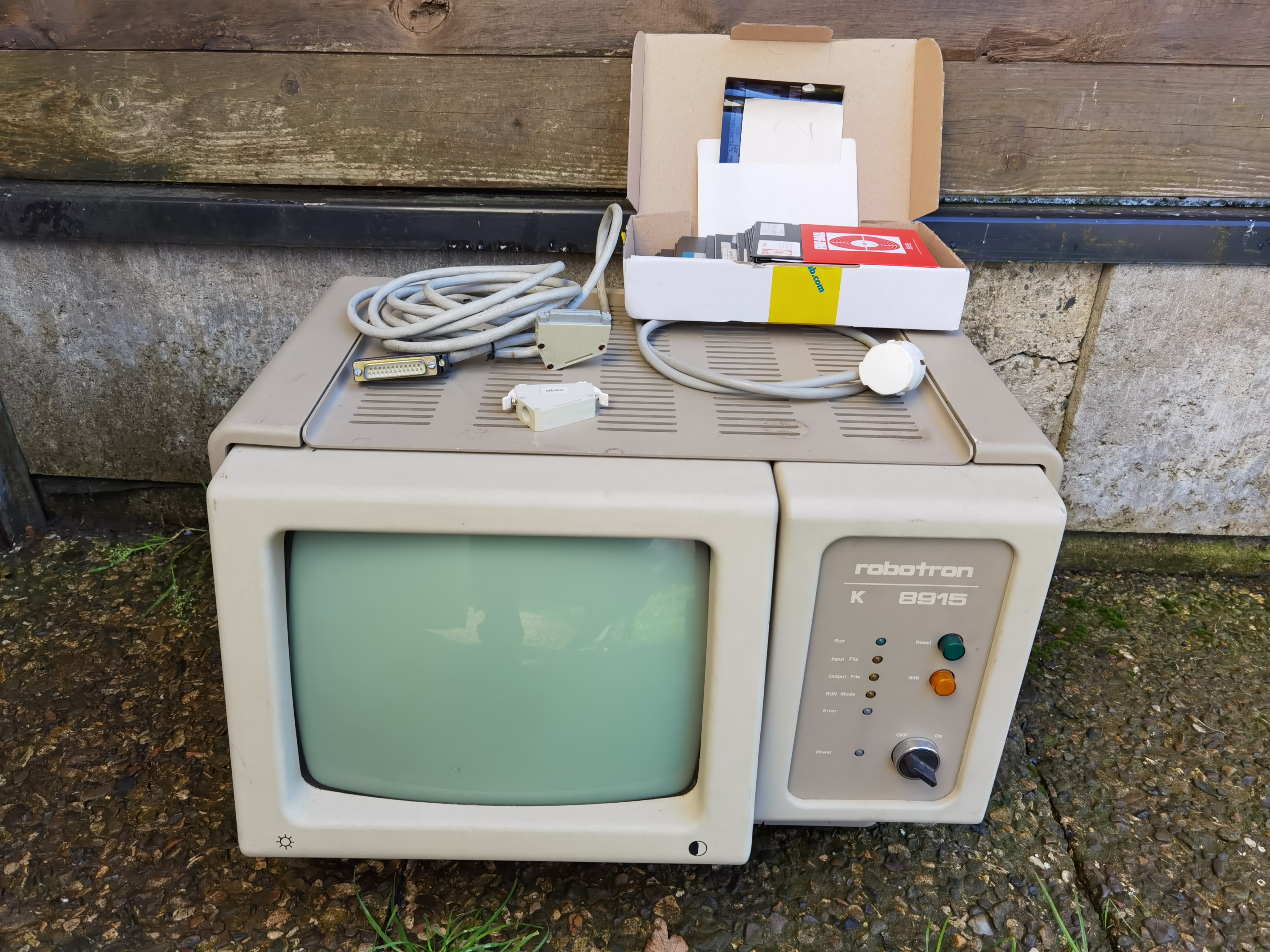 Der Robotron K8915 wurde als Terminal oder als PC hergestellt und angeboten - mein Modell ist die PC Variante mit eingebauten Floppy-Controller K5122. Leider fehlt bei meinem Rechner die Diskettenstation und eine passende Tastatur K7672.