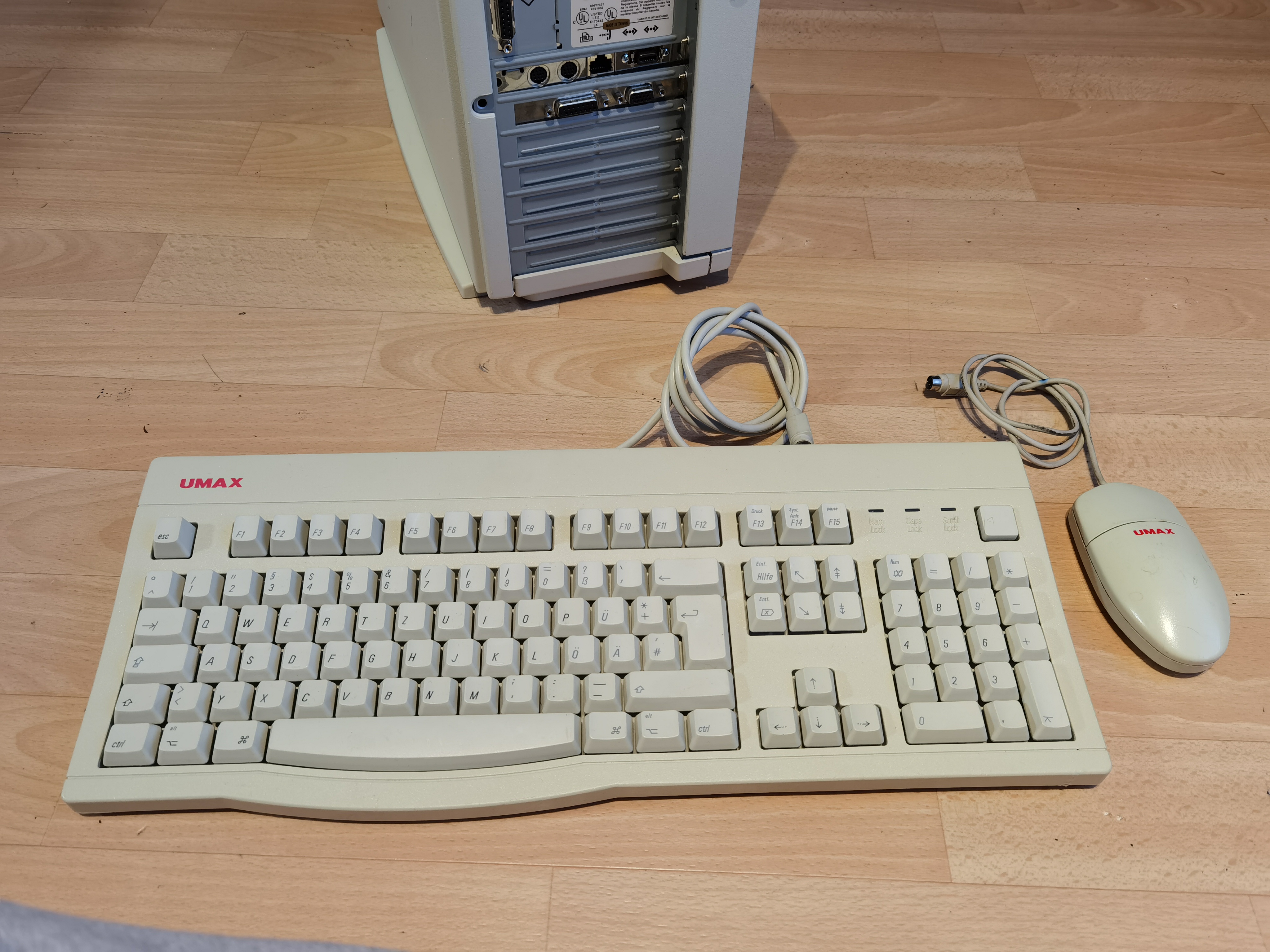 Habe den Gleichen, allerdings mit der Laufwerkstür. Aufgrüstet mit einer G4 / 450 MHz Karte und SATA Laufwerken. Ja das geht, entweder mittels FW Karte mit internem Anschluß oder mit einer dedizierten SATA Karte mit geflaschtem BIOS und einer ATI Radeon 7000. Ich verwende den regelmäßig, da auf meinem ein gutes e-CAD/ESD Programm drauf ist. Auch habe ich die "Düsenjet"-Lüfter getauscht.